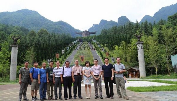 檢查組一行在神農架神農壇合影(右五為組長王虹、右三為曹微副處長、右六為張忠慧)