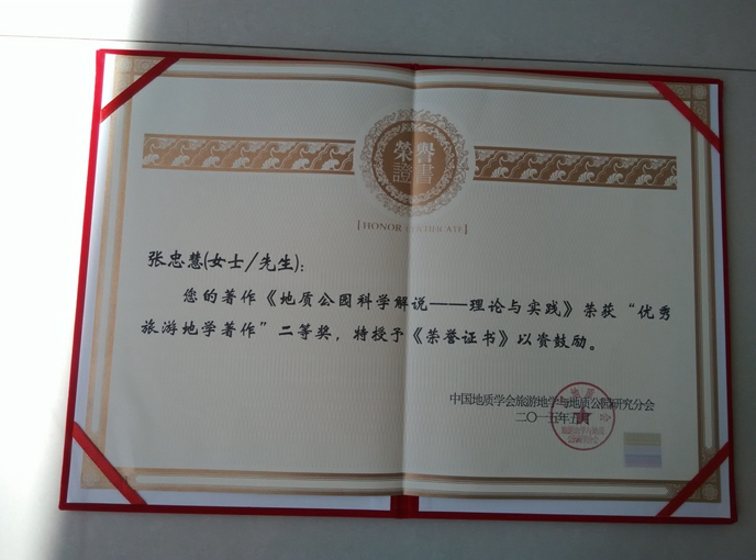 其(qi)中(zhong),我(wo)公司與其(qi)他27個兄弟單位獲得“地質公園(yuan)規劃設計(ji)展(zhan)覽展(zhan)示優秀單位獎”,我公司副總經理張(zhang)忠慧教(jiao)授級高工編著(zhu)的(de)《地質公園科普解說—理論(lun)與實踐》獲(huo)得(de)“優(you)秀旅游地學著(zhu)作獎(jiang)”二等獎(jiang)。