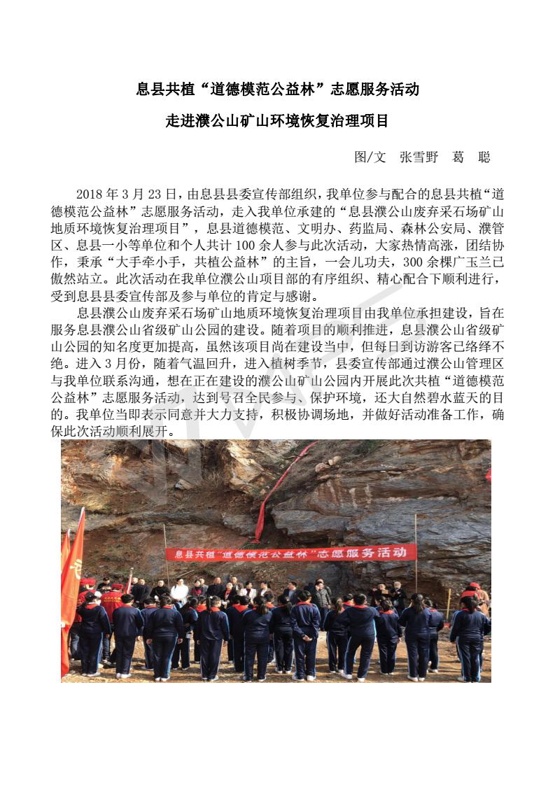 息縣共植“道德模范公益林”志愿服務活動 走進濮公山礦山環境恢復治理項目
