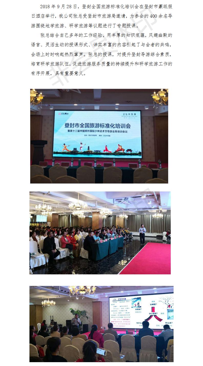 張總應邀參加登封全國旅游標準化培訓會并授課