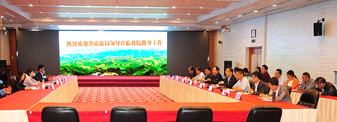 10月11日下午,河南省旅游局副局長周耀霞、旅游促進處副處長陳占元、規劃發展處副處長石云一行蒞臨我院調研指導地質旅游工作。我局副巡視員許兆龍出席調研座談會。