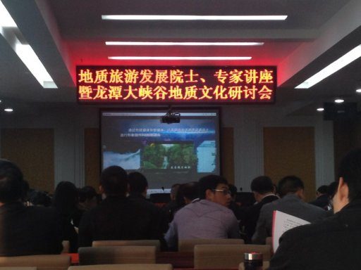 2013年10月26日-27日,由中國地質學會旅游地學與地質公園研究分會主辦,河南省地質旅游發展促進會和龍潭大峽谷景區共同承辦的地質旅游發展院士、專家講座暨龍潭大峽谷地質文化研討會在王屋山-黛眉山世界地質公園龍潭大峽谷景區隆重召開。來自全國首屆“中國最美地質公園”、省內從事地質旅游事業的單位和河南省地質旅游發展促進會會員單位的代表共計180余人參加此次研討會。大會邀請了中科院院士李廷棟、中國著名地質旅游專家陳安澤、國務院資深參事、中國工程勘察大師王秉忱和省內地質旅游專家及部分高校代表進行了專題講座。我公司副總經理張忠慧作為知名地質旅游專家應邀參加了講座,并作了題為《地質公園科普解說》的報告,以深入淺出的理論視角同與會人員進行了交流,受到與會公園代表的好評。