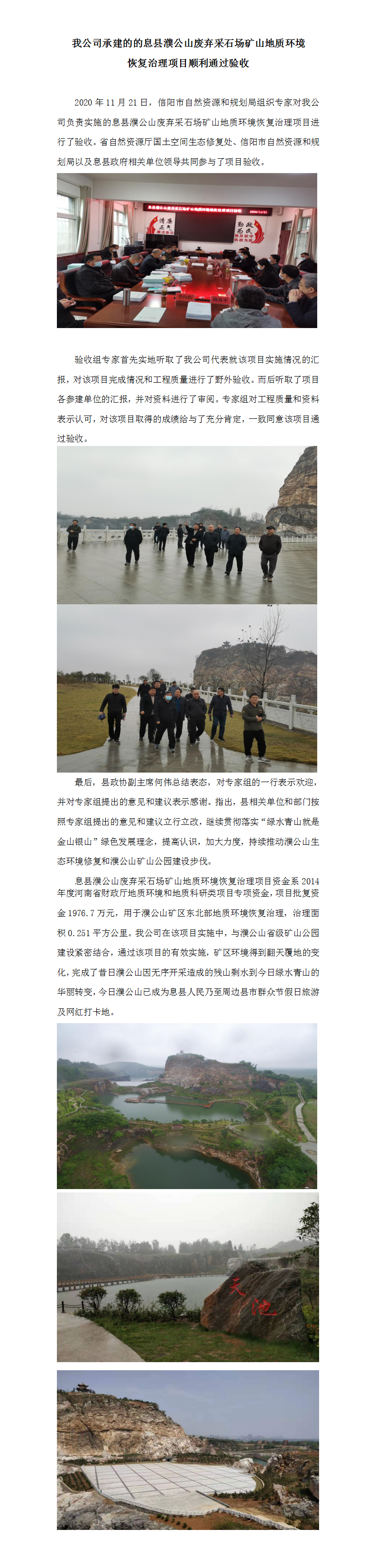 我公司承建的的息縣濮公山廢棄采石場礦山地質環境 恢復治理項目順利通過驗收