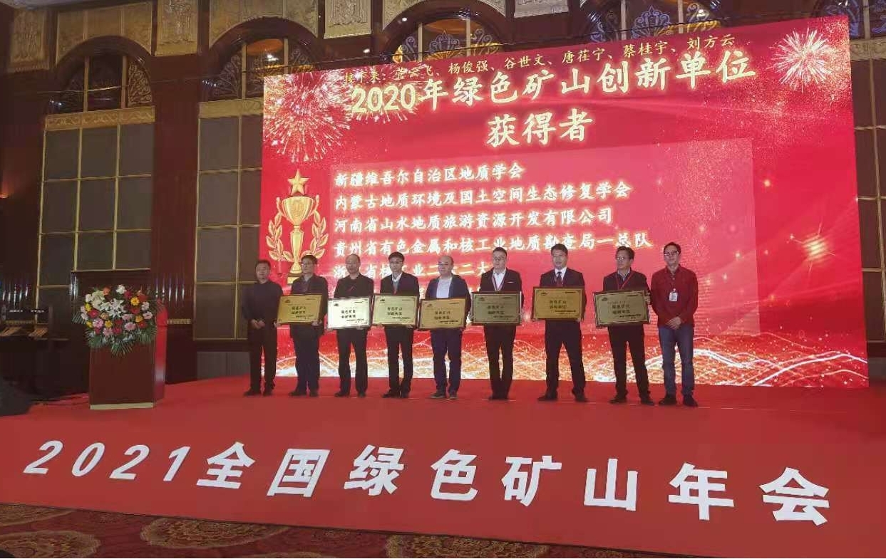 我公司(si)董事(shi)長(chang)張(zhang)忠慧、副總(zong)經理杜開元(yuan)帶(dai)隊參加了本次會(hui)議。會上公布了2020年度綠色(se)礦山(shan)突出貢(gong)獻、創(chuang)新單位等獎項名單,我公(gong)司榮(rong)獲綠色礦山創新單位(wei),副總經理杜開元(yuan)代表我公司領取了獎牌和證書。