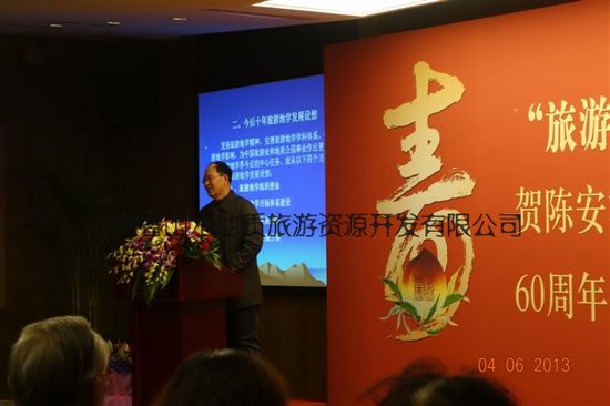 大會由北京中國地質大學教授田明中主持,在熱情洋溢的氣氛中,首先由陳安澤先生向與會代表講述了旅游地學思想及發展展望,陳先生將旅游地學思想歸納為四句話八個字“創新、團結、服務、開拓”。