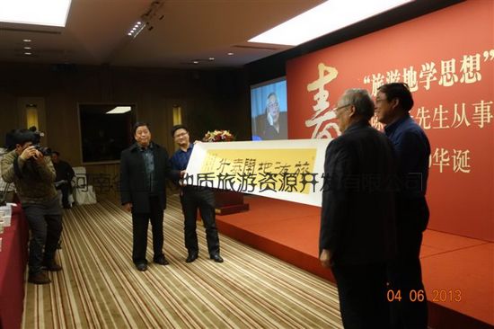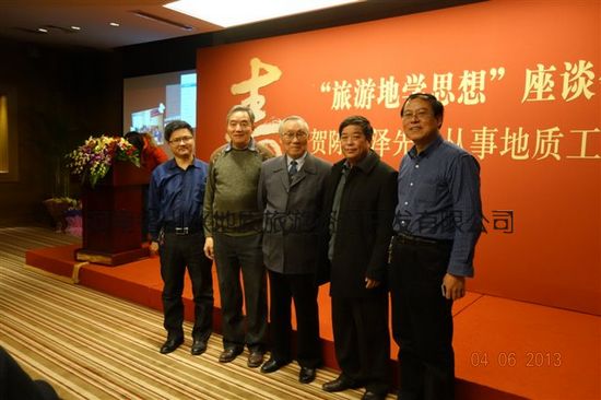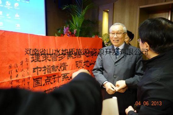 受中國地質學會旅游地學及地質公園研究分會的邀請和河南省地質旅游發展促進會的委托,2013年12月26日,我公司副總經理張忠慧和河南省國土資源科學研究院副院長秦政,河南省地質調查院旅游地質調查中心主任章秉辰、方建華以及洛寧縣人民政府、王屋山地質公園管理處、神靈寨國家地質公園地質公園管理處、深宏環境設計工程公司領導等十人,赴北京參加“旅游地學思想座談會及陳安澤先生從事地質工作六十年、80華誕”盛會。