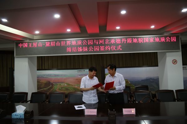 為進一步加強(qiang)地質(zhi)公園(yuan)建設和(he)地學科(ke)研、科(ke)普教育(yu)推(tui)廣,促進地質(zhi)公園(yuan)之間的(de)合作交流,5月(yue)19日,河北承德丹霞地貌國(guo)家地質公(gong)園一(yi)行(xing)到(dao)王(wang)屋山—黛眉山世界(jie)地質公(gong)園考察學(xue)習(xi),并簽約了王屋山—黛眉山(shan)世界地質(zhi)公(gong)園與河(he)北承德丹(dan)霞地貌國家地質(zhi)公(gong)園友好合作協議。我公(gong)司(si)副總(zong)張忠慧和經營部主(zhu)任(ren)任(ren)利平等一同參加了簽約儀式。