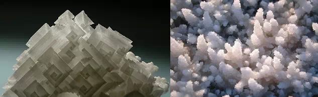 左邊為(wei)鉀鹽,鹵(lu)化物大類,等軸晶(jing)系。大量發育于(yu)蒸發沉積環境。為(wei)鹽湖相最末期的典(dian)型沉積產物。圖(tu)片來(lai)自于(yu)kchloride.tumblr.com 右(you)邊為(wei)光鹵(lu)石(shi),鹵(lu)化物大類,斜方(fang)晶(jing)系。同鉀鹽一樣為(wei)鹽湖最末期產物。析(xi)出于(yu)高濃度(du)的苦(ku)鹵(lu)。