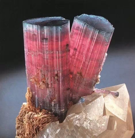 【碧(bi)璽(xi)】又(you)稱為電氣石,三方(fang)晶系(xi),是一(yi)種硼硅酸鹽(yan)結晶體,并且可含有鋁、鐵、鎂、納、鋰、鉀等元素,碧(bi)璽(xi)的(de)成(cheng)分復雜,顏(yan)色(se)也復雜多變。國際珠寶界基本上(shang)按(an)顏(yan)色(se)對碧(bi)璽(xi)劃分商業品種,顏(yan)色(se)越是濃(nong)艷價值越高,莫氏硬度7-8