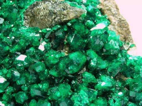【透(tou)視石(shi)】翠銅(tong)(tong)(tong)礦、綠銅(tong)(tong)(tong)礦,透(tou)視石(shi)是(shi)一種含水(shui)的銅(tong)(tong)(tong)硅酸(suan)鹽,透(tou)視石(shi)主要分布在非洲(zhou),硬度5