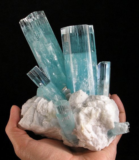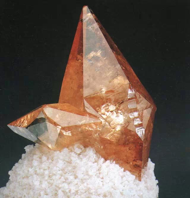 【托帕石】礦物名黃玉,礦物名黃玉,常見的藍色黃玉為人工改色而成,因為托帕石的透明度很高,又很堅硬,所以反光效應很好,加之顏色美麗,深受人們的喜愛。莫氏硬度8