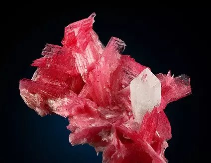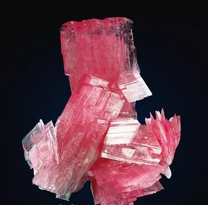 【菱錳礦】也是碳酸鹽礦物,純(chun)菱錳礦很少(shao)見,晶體屬三方晶系,透明色美者可作寶石,莫氏(shi)硬(ying)度3.5-4.5