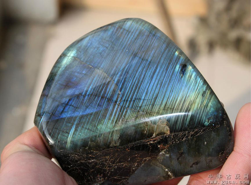 【拉長(chang)(chang)石(shi)】是斜長(chang)(chang)石(shi)的(de)(de)一(yi)種,其中有些(xie)有暈彩純凈而色澤美麗的(de)(de)斜長(chang)(chang)石(shi)可(ke)作(zuo)寶石(shi),但并非很名(ming)貴,硬度6-6.5