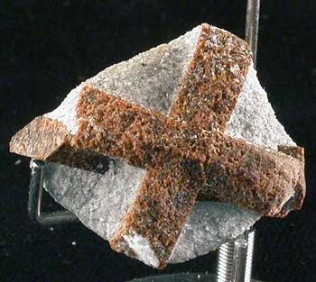 【十字(zi)石(shi)】是島(dao)狀結構(gou)硅酸鹽礦物,它因有一個奇特的十字(zi)外(wai)形而(er)得名。十字(zi)石(shi)又硬(ying)又脆,罕見的透明十字(zi)石(shi)可(ke)當作寶石(shi) ,莫氏(shi)硬(ying)度7.5