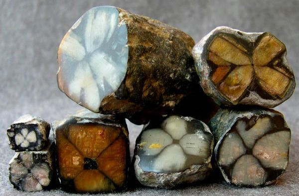 【紅柱石(shi)(shi)】(空晶石(shi)(shi))是一種(zhong)鋁(lv)硅酸鹽礦物,紅柱石(shi)(shi)有一個變種(zhong)叫空晶石(shi)(shi)。在空晶石(shi)(shi)的剖(pou)面會呈(cheng)現(xian)出黑(hei)色的十字結構,具有玻(bo)璃光澤(ze)。有些質量好且透明的紅柱石晶體還(huan)被當作(zuo)寶石,莫氏硬(ying)度6.5-7.5