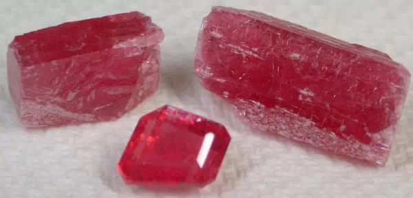 【紅寶石】它是剛玉的一種,主要成分是氧化鋁,紅寶石質地堅硬,硬度僅在金剛石之下,以“鴿血紅”最佳,次為石榴紅,玫瑰紅等莫氏硬度9