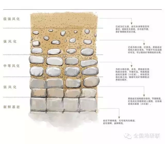 花崗巖風化(hua)強度分(fen)帶剖面示(shi)意圖(tu)