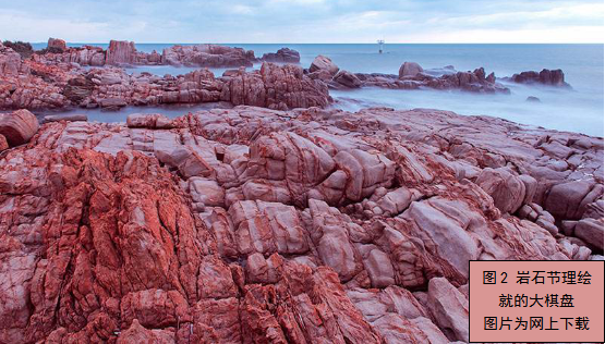 2、有趣的是(shi)(shi),這里的花崗巖中發育了兩組近(jin)于等間(jian)距的垂直節(jie)理(li),造型(xing)就(jiu)(jiu)像是(shi)(shi)一個(ge)棋盤(pan)(pan)(pan),地質學上稱(cheng)之為“棋盤(pan)(pan)(pan)格(ge)式節(jie)理(li)”(見(jian)圖(tu)12、13)。也就(jiu)(jiu)是(shi)(shi)說,整個(ge)棋子灣(wan)的海岸,就(jiu)(jiu)是(shi)(shi)一個(ge)“大棋盤(pan)(pan)(pan)”。